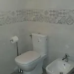 Ein Badezimmer ist mit einem Bidet, einer begehbaren Dusche und einer getrennten Toilette ausgestattet. Außerdem finden Sie hier Handtücher.